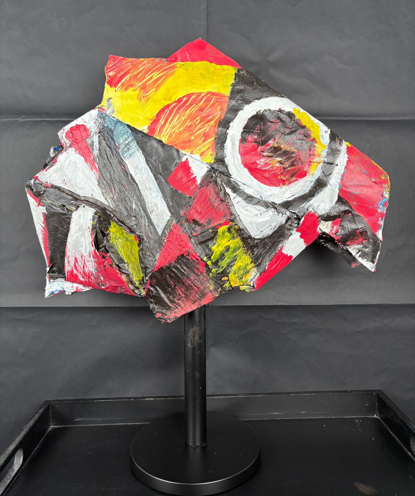 CA-CO-PHONIE 11/17 Face A – Combine B.A-BA Formatautour de 50 à 70cm de largeur et de hauteur (support métal, compris) TechniquePeinture acrylique sur technique mixte