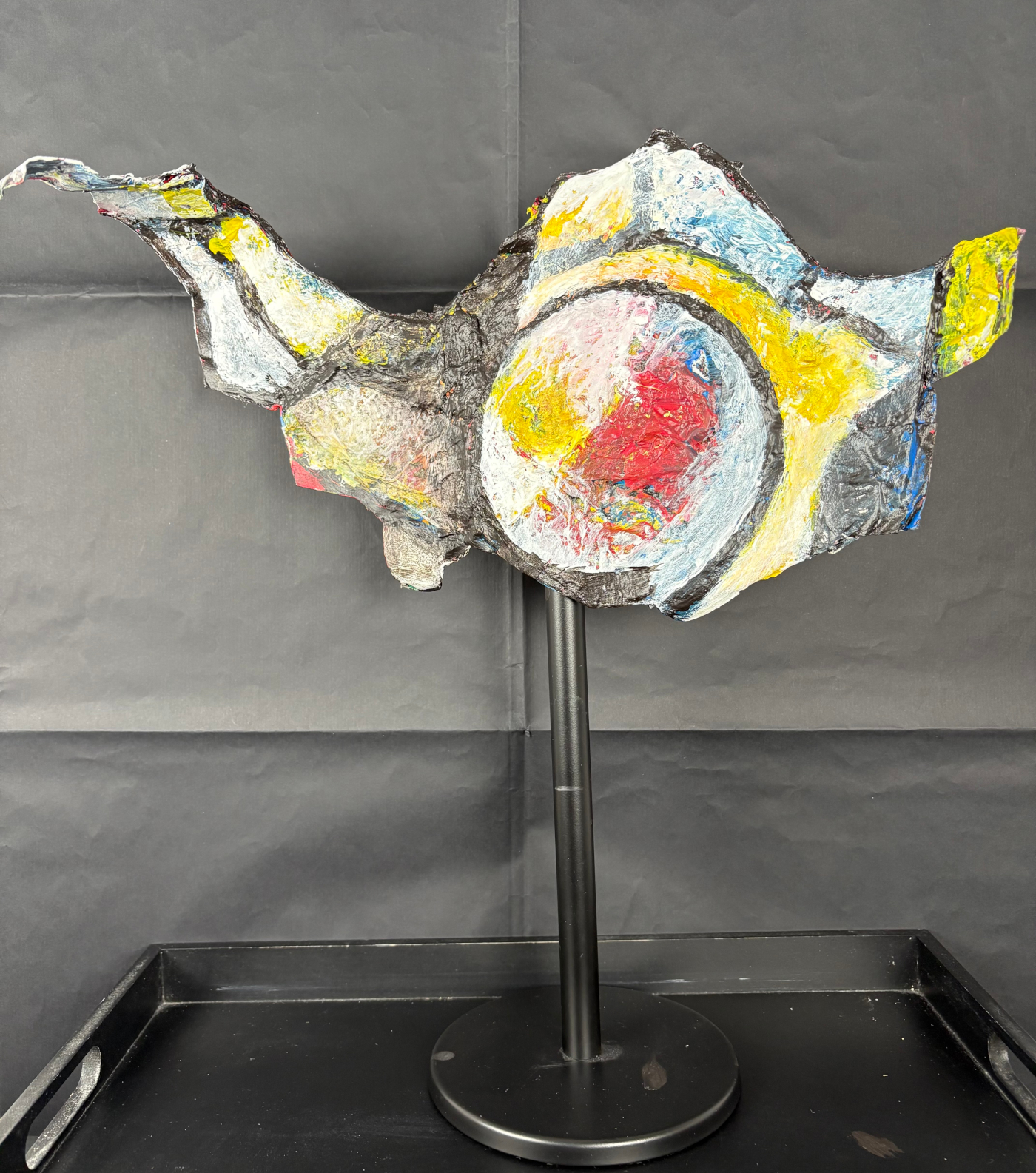 CA-CO-PHONIE 15/17 Face A – Combine B.A-BA Formatautour de 50 à 70cm de largeur et de hauteur (support métal, compris) TechniquePeinture acrylique sur technique mixte