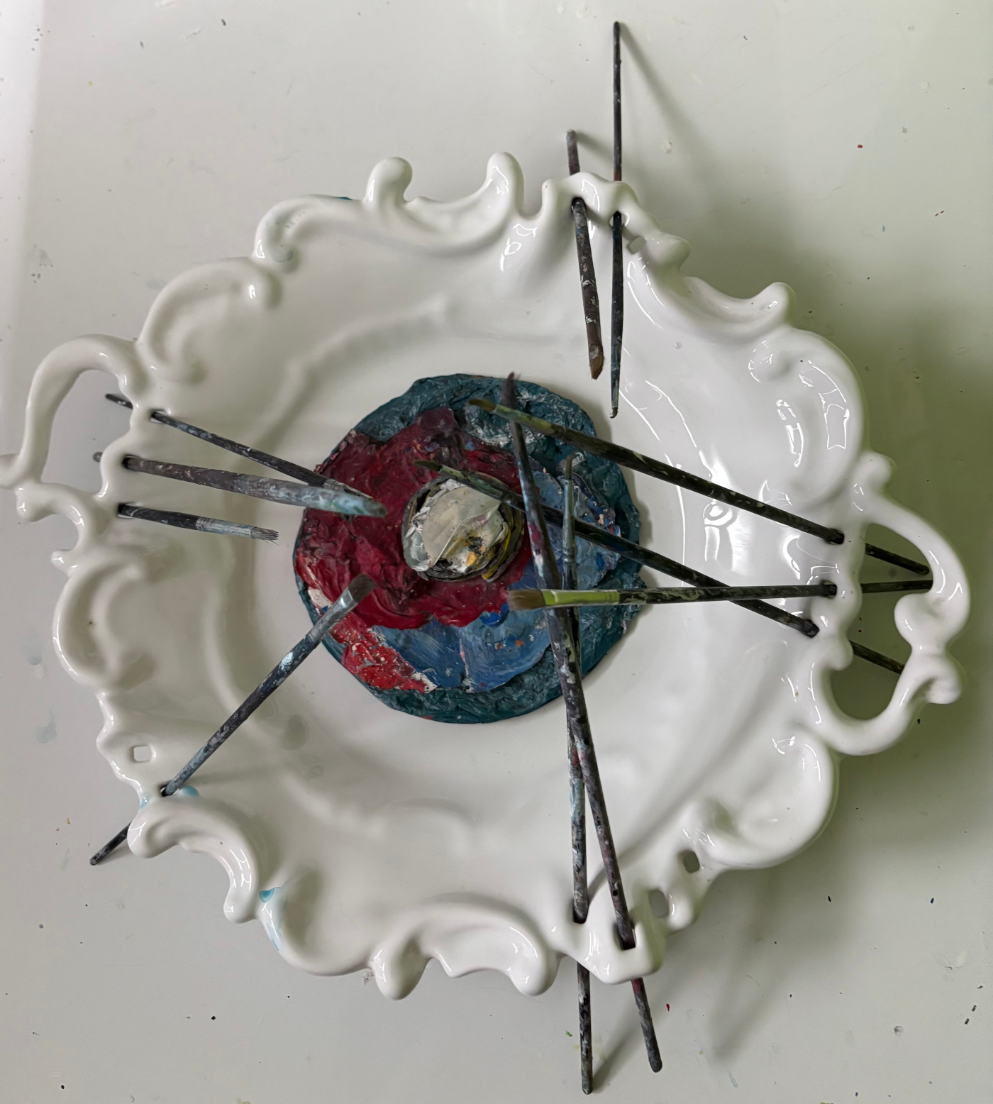 AUTRE Assemblage FormatH 25 cm x 35 cm x 40 TechniqueAssemblage plat céramique - pinceaux - restes de peinture acrylique